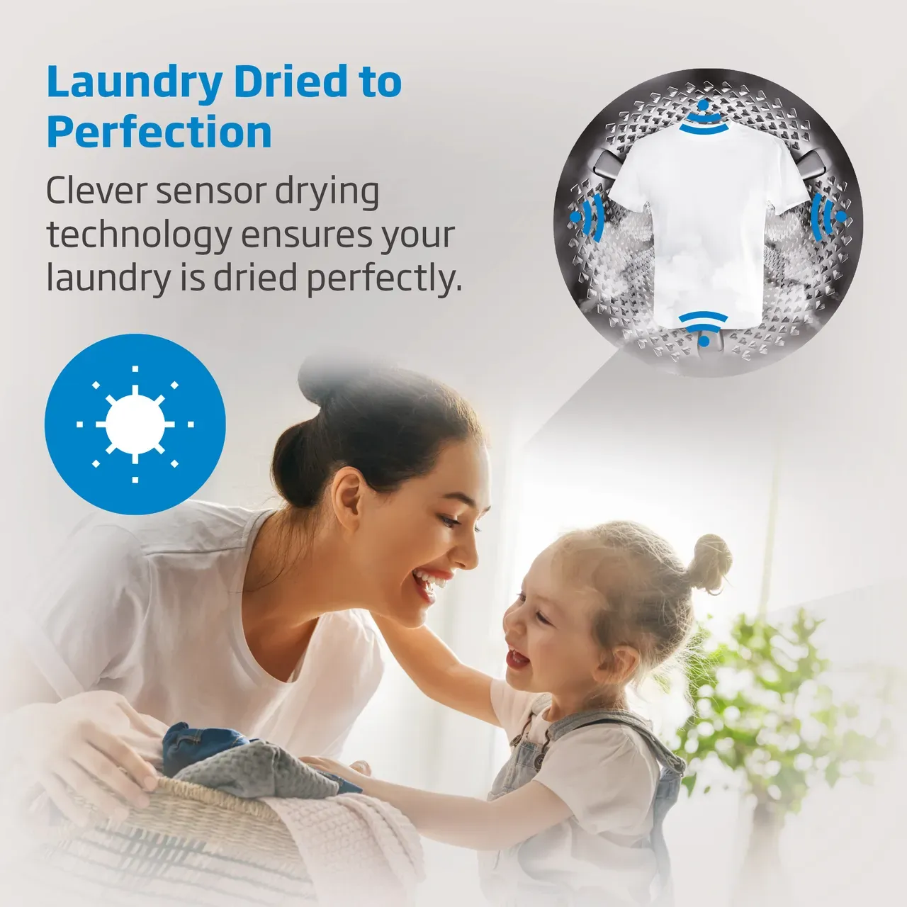 Over-drying clothes wastes energy and damages fabrics. This model includes automatic sensor drying, which monitors moisture levels inside the drum.