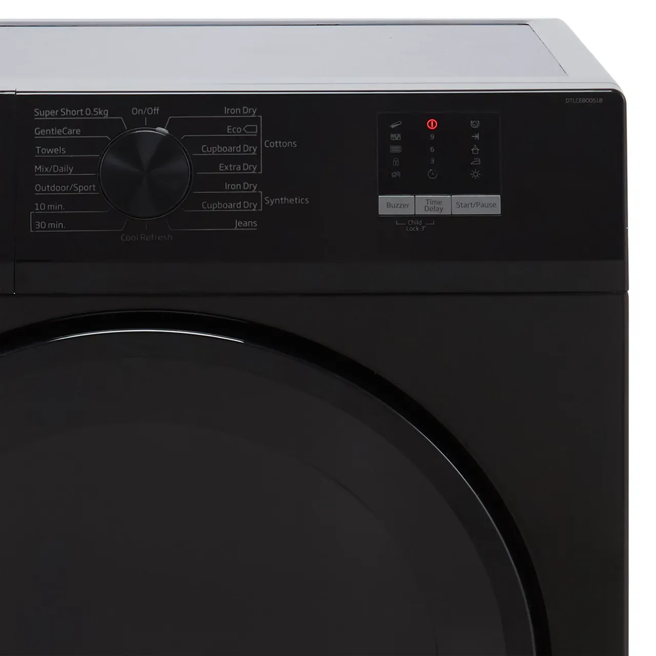 With its sleek black finish, this dryer adds a premium touch to any laundry room or kitchen space. The modern control panel makes selecting programs simple and quick.