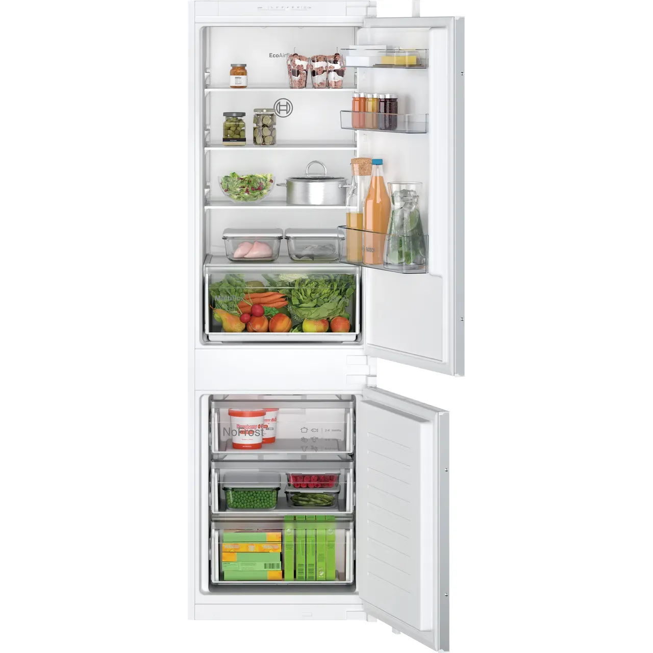 Upgrade your kitchen with the Bosch Series 2 KIN86NSE0G Integrated Fridge Freezer and enjoy fresh food storage every day.